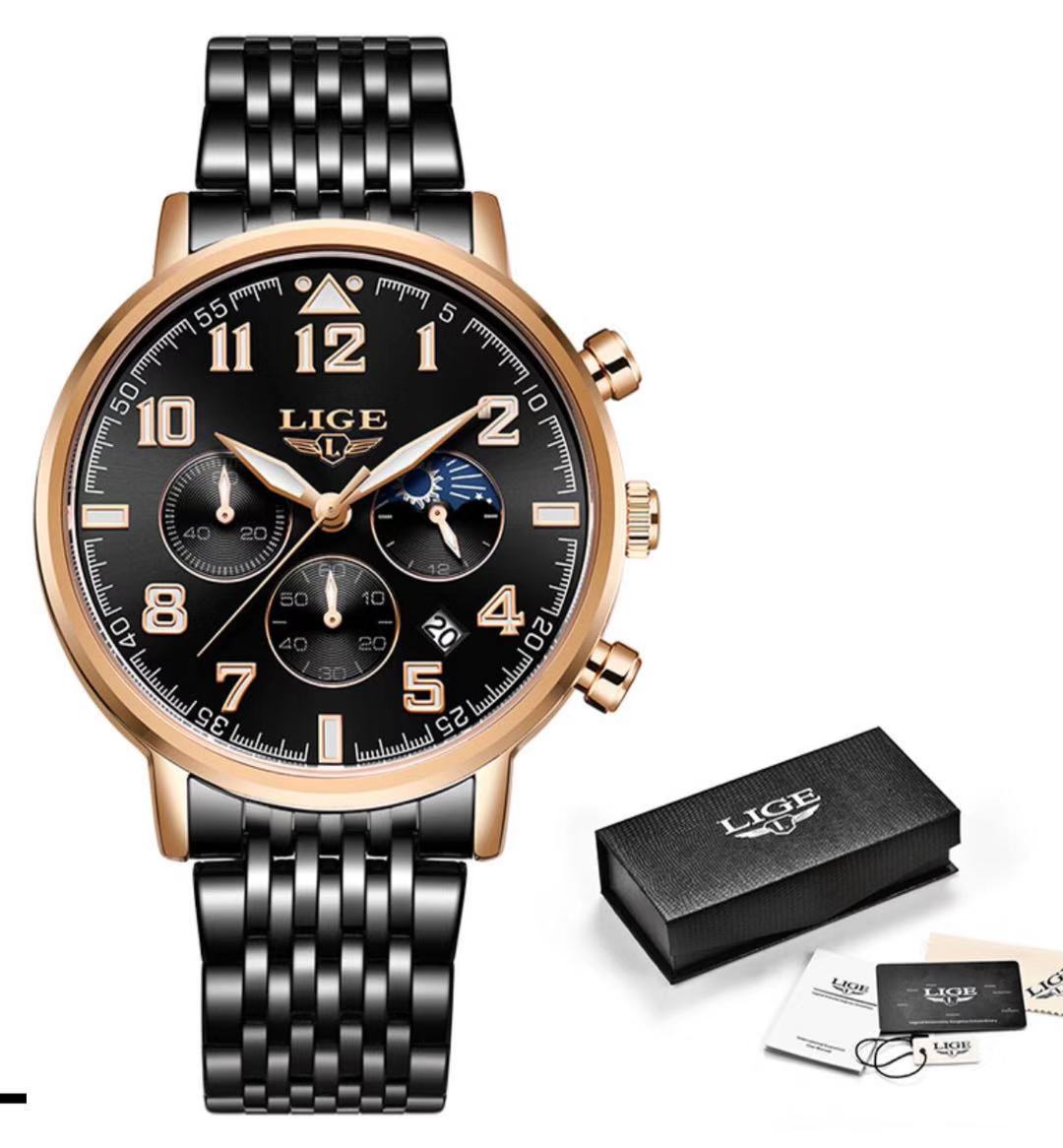 LIGE 9879 Business Style Waterproof Men Wrist Watch Full Steel Quartz Watches